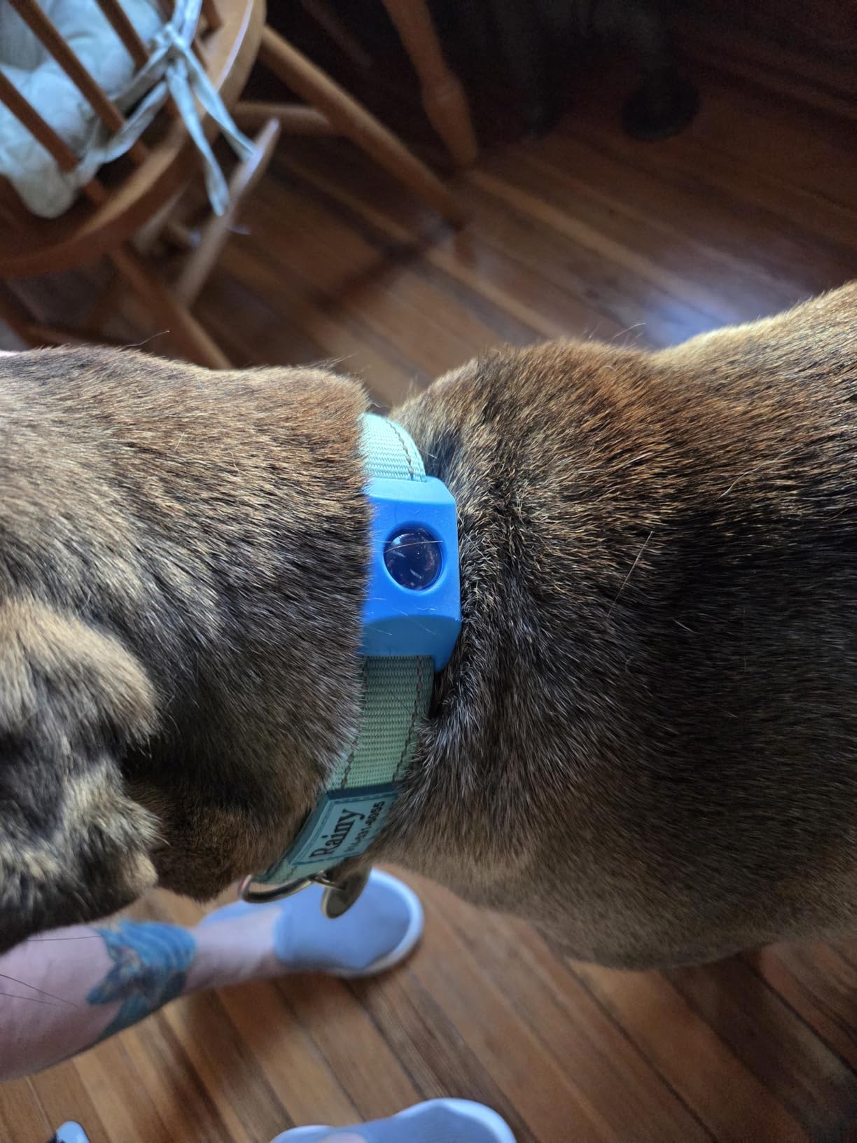 Introduce la correa del collar por las ranuras del TickGuard™ y asegúrate de que quede firme y centrado